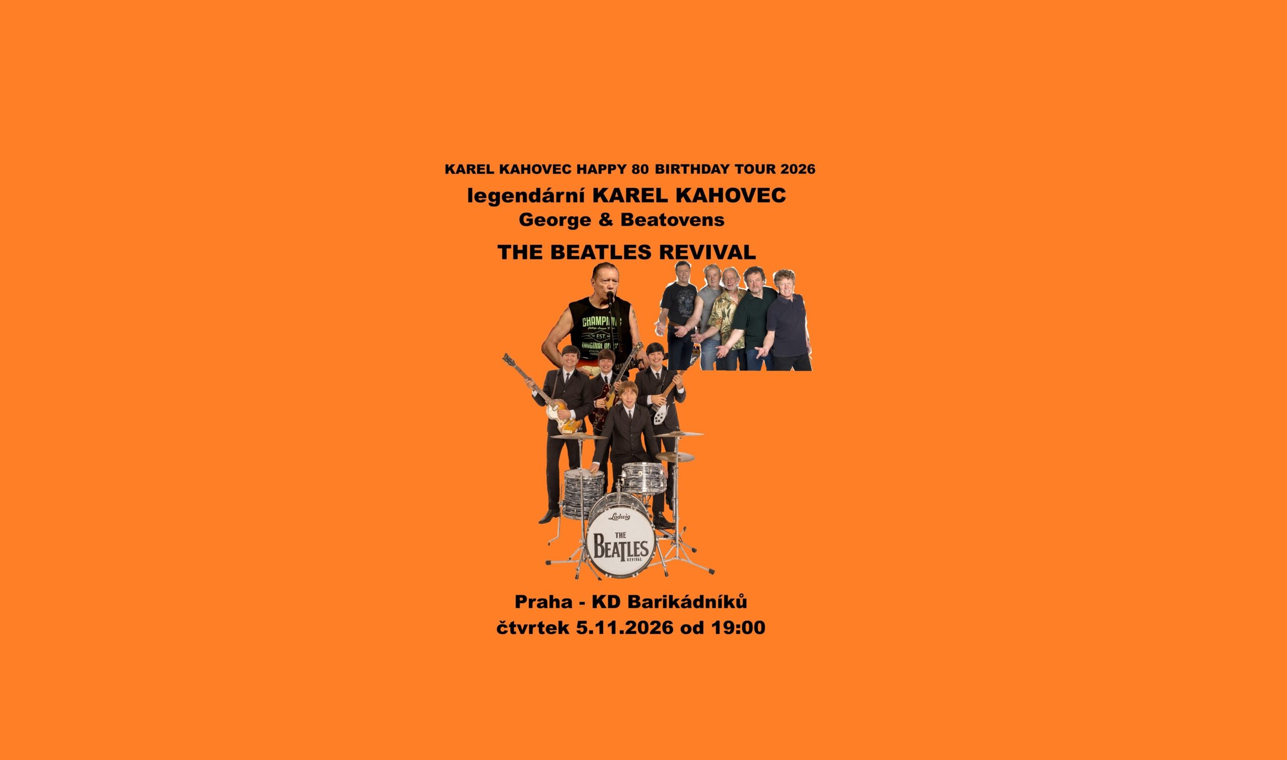 Na jednom pódiu se představí společně se skupinami George & Beatovens a The Beatles Revival, která koncert obohatí o nesmrtelné hity slavných „Brouků“.